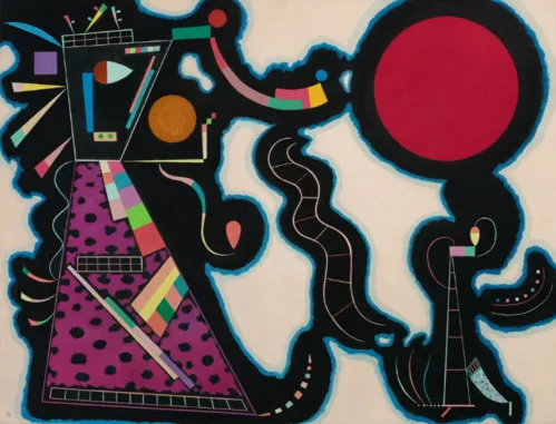 Kandinsky painted Le Rond Rouge in the spring of 1939 during his years in Paris. The artist moved to the city in late 1933 after the Nazi government closed the Bauhaus school in Berlin where he had been teaching. It was during his time in the French capital that he developed a new visual vocabulary that incorporated more pastels and biomorphic forms. The painting is composed of geometric and sinuous forms that seem to be radiating energy from within. It was first exhibited at a solo presentation of the artist’s work in the spring of 1946 at the Galerie René Drouin in Paris. It was also shown during Kandinsky’s memorial exhibition at the Stedelijk Museum Amsterdam in the winter of 1947–1948.