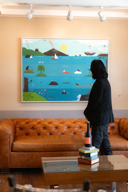 Few venues capture old Hollywood glamour quite like the Roosevelt. This year, blessed with warmer-than-expected weather (a welcome reprieve for blizzard-weary New Yorkers), the hotel felt especially inviting. From the David Hockney–designed pool that anchors the fair’s social scene to the guest rooms—replete with rich textures, hardwood floors, and the occasional sliding barn door—Felix balances conviviality with discovery, with artworks tucked inventively into the hotel’s intimate interiors.