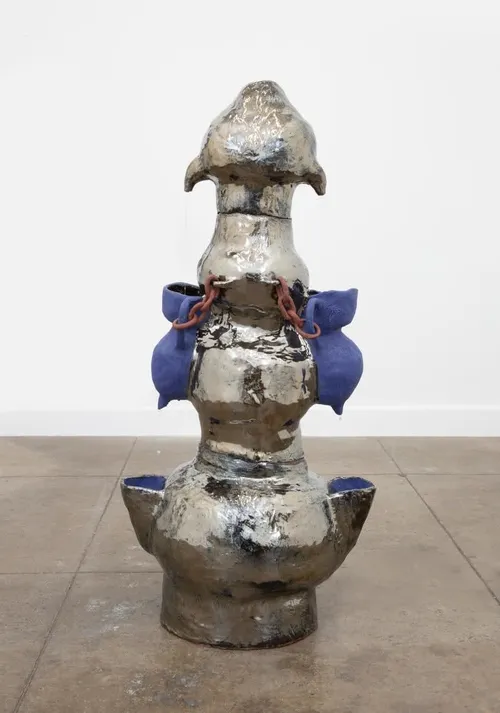Inez is the daughter of Alison Saar and granddaughter of Betye Saar, two major artists who are towering figures in L.A.’s history, and her practice carries that legacy. Working primarily in ceramics, she creates forms that echo plant and animal life, often threading in personal references. Her ongoing series “Memory Jugs,” for instance, pays direct homage to her grandmother Betye’s references to African American folk art tradition. They function as intimate vessels that honor her family histories.