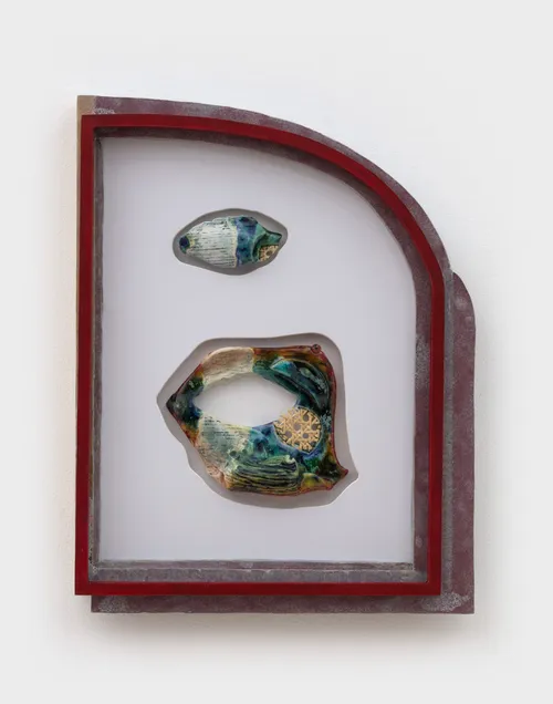 Part painting, part ceramic, part architectural fragment, Stolen Document 3 (2022), on view at Felix 2026, distills Brazilian artist Sacha Ingber’s ongoing exploration of bureaucracy and craft.