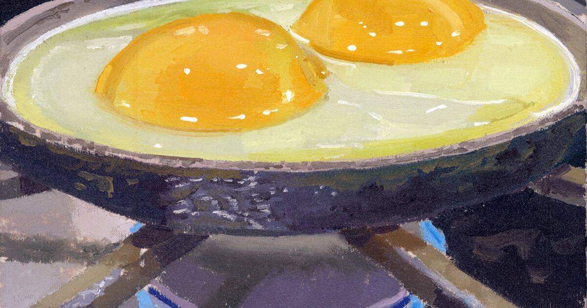 Pan-frying eggs, a shimmering soap bubble on a kitchen counter, and a close-up of flower stems in a vase are just a few subjects of 13 new paintings in Brad Nelson’s latest solo show. “Bubble” at New York’s Frosch&Co mostly focuses on the American artist’s photorealistic still lifes, alongside one sculpted brick.