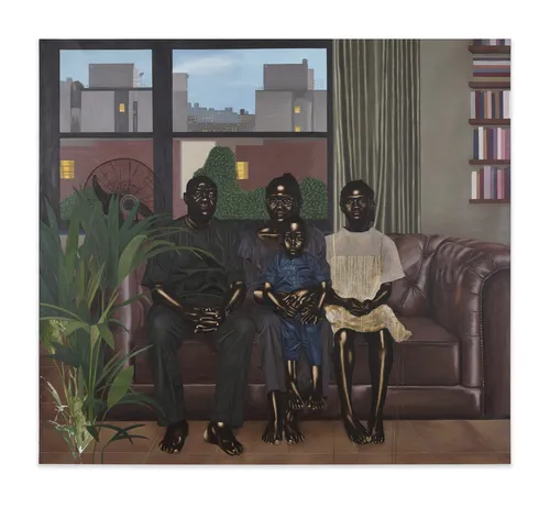 Home is a memory for Eniwaye Oluwaseyi, who immigrated from Nigeria to Amsterdam in 2023. He paints intimate yet distanced paintings of family and friends, inhabiting domestic space, inspired largely by his personal archive of photographs. These works combine the formality of mid-century studio portraiture with expressive color and layered surfaces. Oluwaseyi presents a series of new works in parallel solo exhibitions with Zidoun-Bossuyt in Luxembourg and Paris: “Buried Roots Up in the Air Part 1” and “Buried Roots Up in the Air Part 2,” respectively.