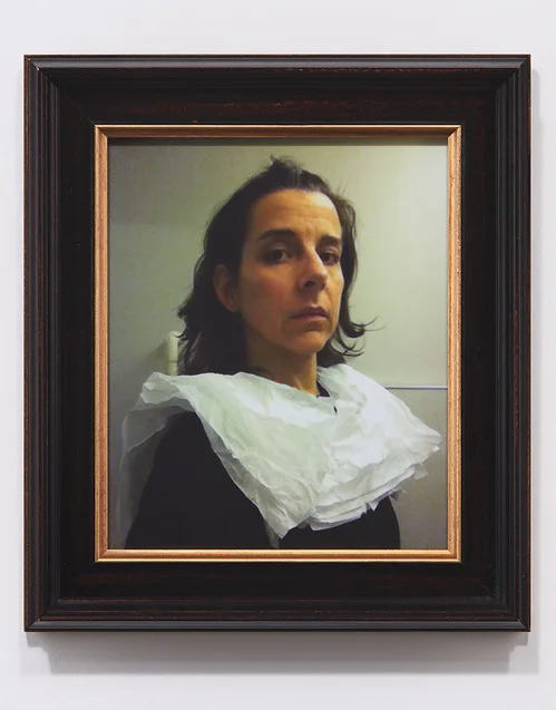 Nearly a century later, the American conceptual artist Nina Katchadourian locked herself in an airplane bathroom, fashioned a wimple from a toilet-seat cover and a veil from a hand towel, and photographed herself in the manner of a fifteenth-century Flemish portrait. The unexpectedly convincing images, Lavatory Self-Portraits in the Flemish Style from her series “Seat Assignment” (2010–present), went viral.