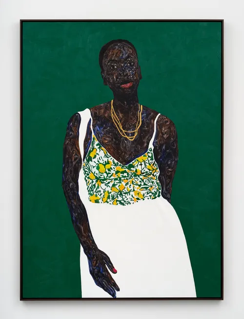 Over the past few years, Amoako Boafo has emerged as one of the preeminent voices in Black figuration. The Ghanaian painter crafts distinctive portraits, layering oil paint to create uniquely textured depictions of Black skin. His canvases have received commercial and critical acclaim: In 2024, the artist had a solo exhibition entitled “Amoako Boafo: Proper Love” at the Belvedere Museum in Vienna, and in 2020, Boafo was featured in The Artsy Vanguard.