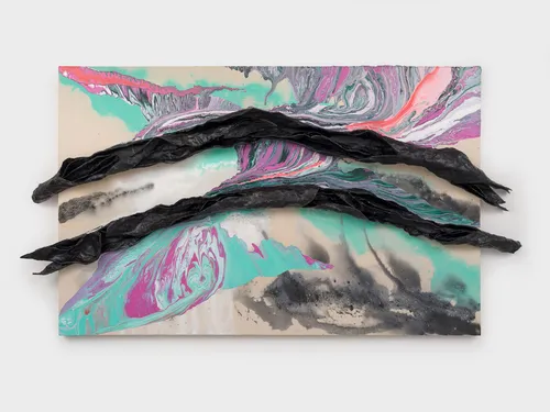 Inspired by domestic spaces and modernist traditions, Rodney McMillian creates sculptures and paintings with house paint, chicken wire, bed sheets, and other media. His solo show at the Los Angeles gallery Vielmetter features sculptures, works on paper, and paintings that examine the U.S.’s history of discriminatory housing policies and redlining, which denies financial services to residents of areas with high minority populations. McMillian’s deft visual representations of difficult political topics have gained renown in both galleries and museums.