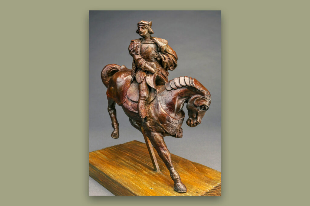 “It’s not in wonderful condition. Beeswax wasn’t meant to last for 500 years, but they’re doing what they can to preserve it,” Maly said. “The left front leg, the ears of the horse, the arms of the rider are missing because over the years it has decomposed.”