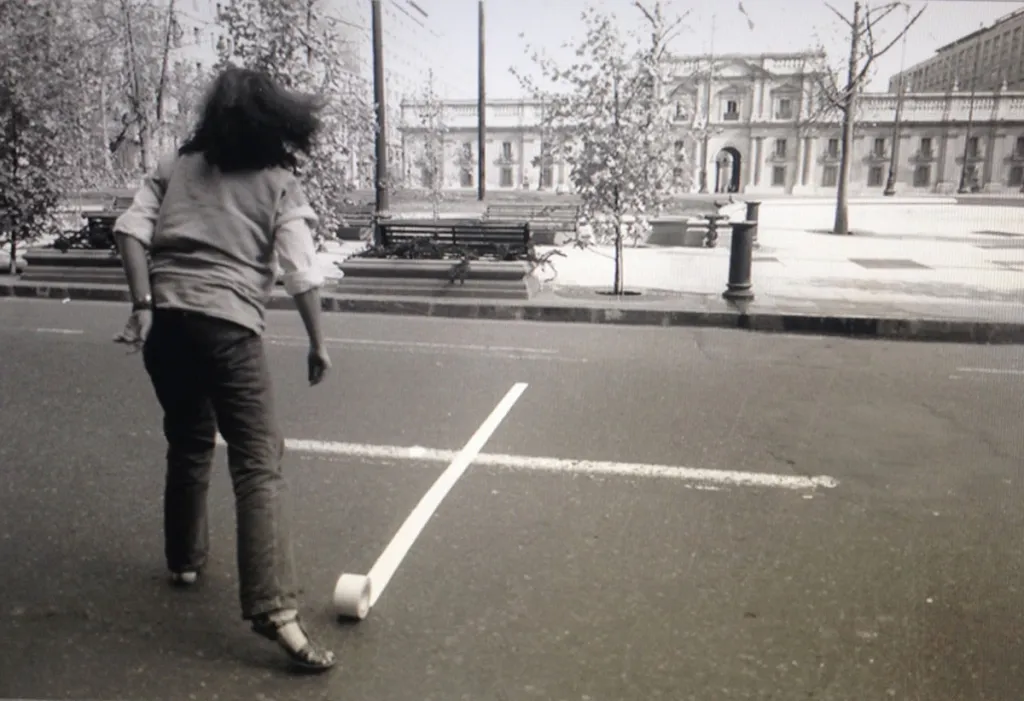 In the 1980s, two women—a German Jew and a Palestinian—met in Chile, where they were both born to families of immigrants. Together, they crafted some of the most powerful antifascist art of the era, collaborating on installations and documenting one another’s performances. One of those women, the artist Lotty Rosenfeld, is the subject of a revelatory retrospective at Columbia University’s Wallach Art Gallery, on view through March 15. The other, her close friend, the writer Diamela Eltit, is present throughout.