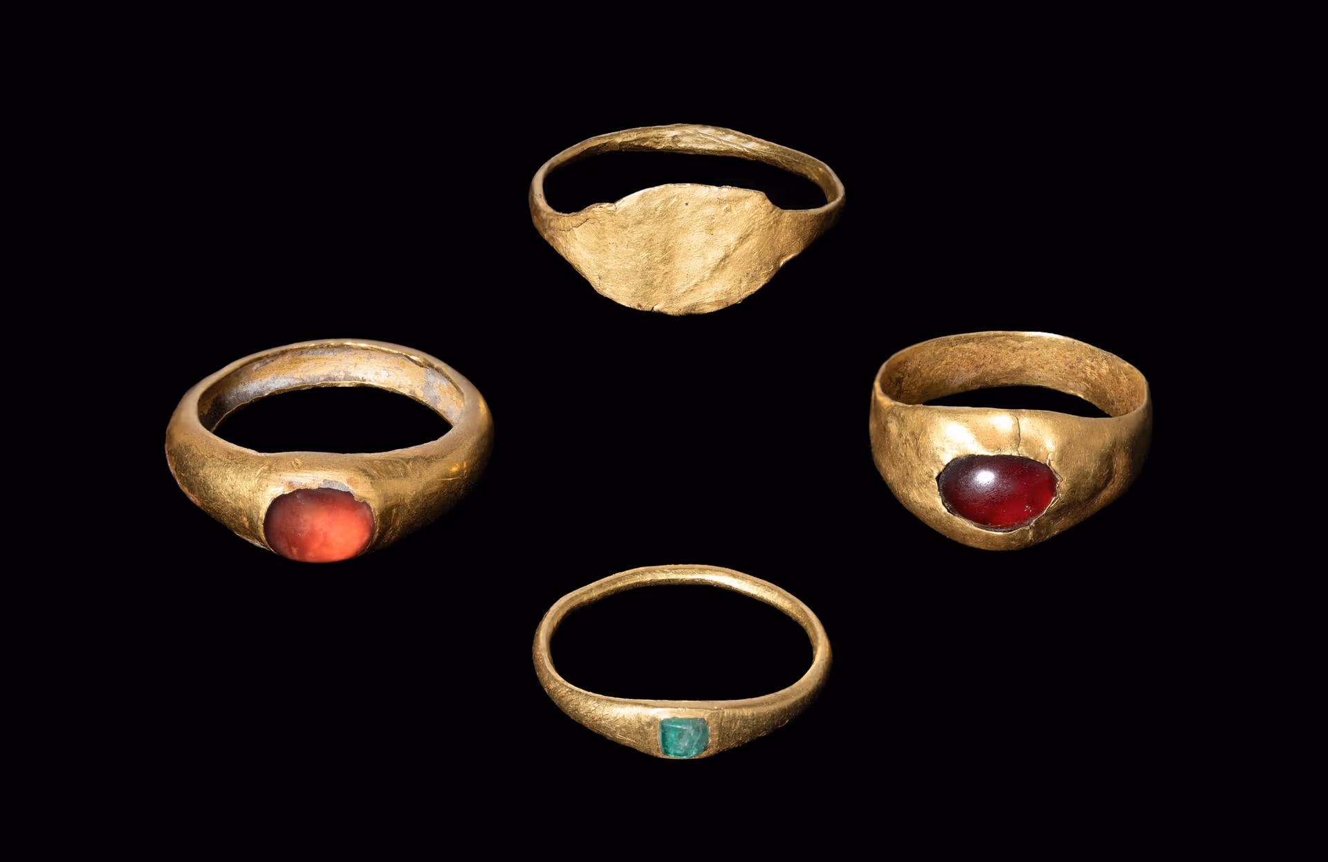 On the fifth day of Christmas… These gold Roman rings from Charles Ede’s Christmas catalogue are under £1,000 each Courtesy Charles Ede