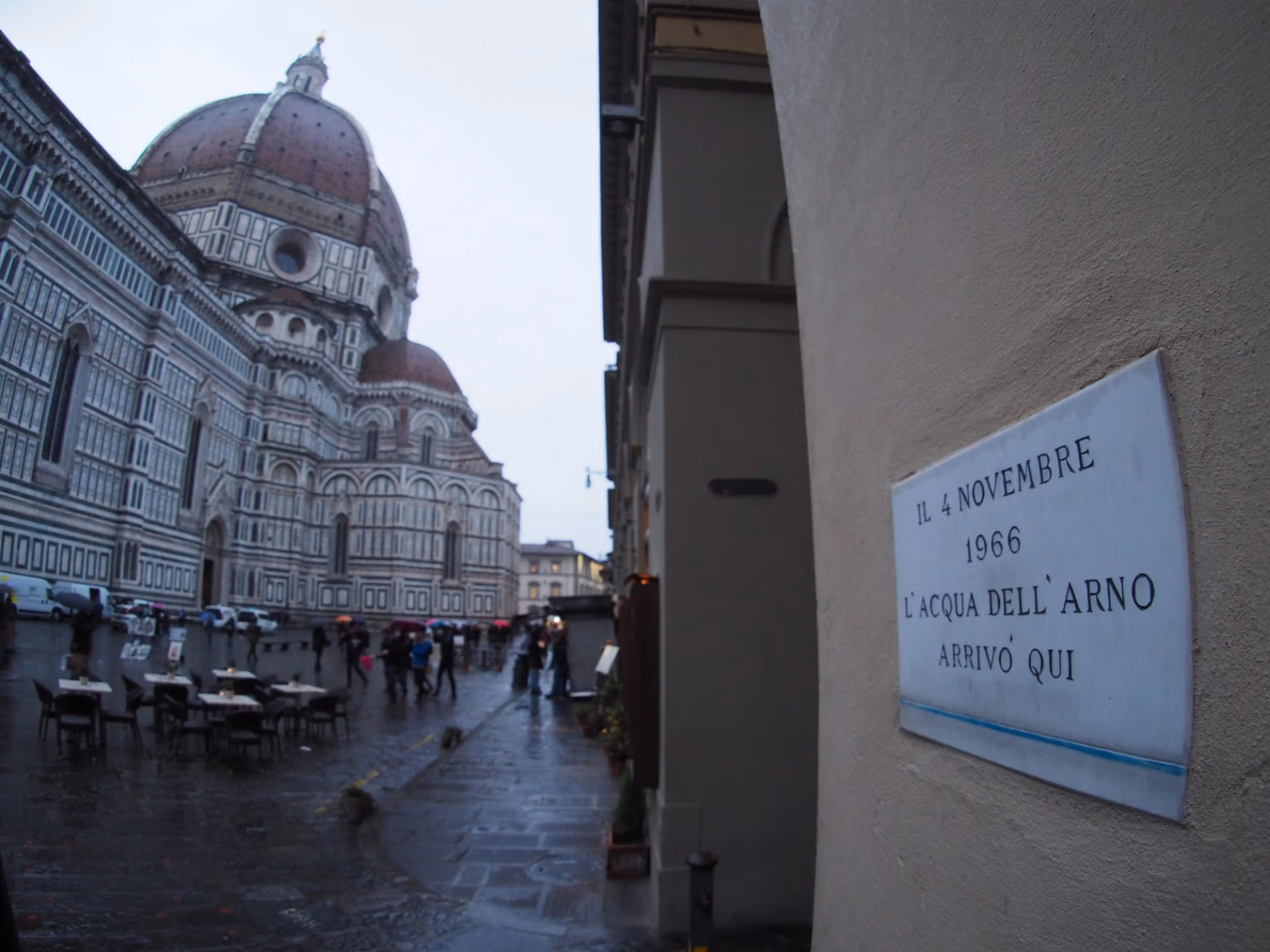 A plaque close to Florence’s Cathedral of Santa Maria del Fiore shows the water levels reached during the flood on 4 November 1966