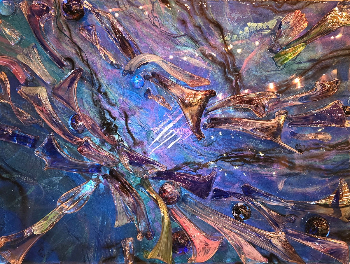 Christopher Lotus is the creator of Diamond Lotus, a body of work situated at the intersection of material, light, and consciousness. Blending hand-blown glass, layered resin, and precious elements such as gemstones and diamonds, his practice redefines the boundaries between painting and sculpture.