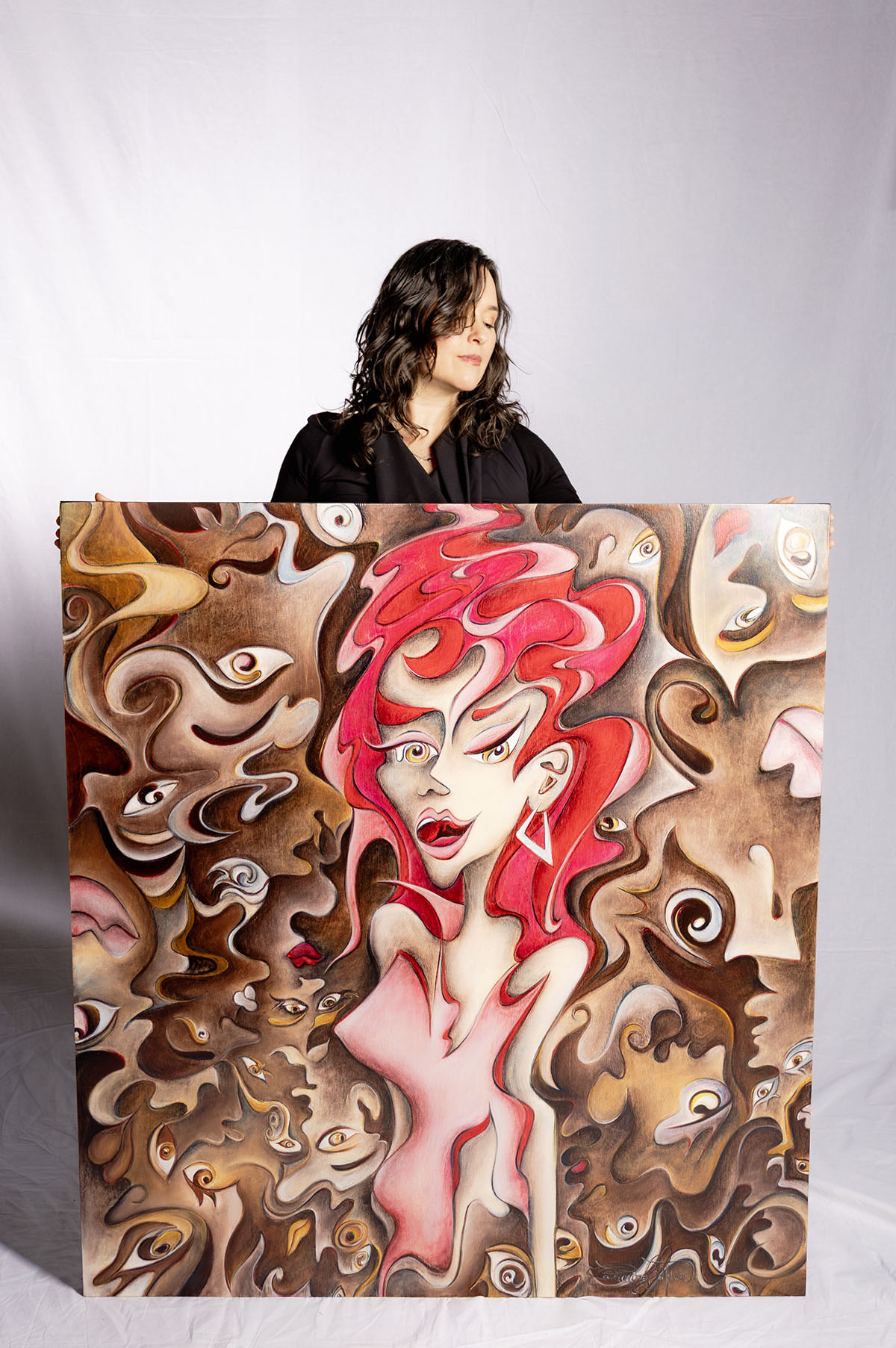 Canadian artist Catherine Blackburn describes her work as something that emerges when words fall short—an intuitive release shaped by memory, emotion, and the subconscious. Working in pastels on wood, she creates luminous, symbolic figures that move with fluidity and feeling, each piece carrying what she calls “a fragment of my soul.”