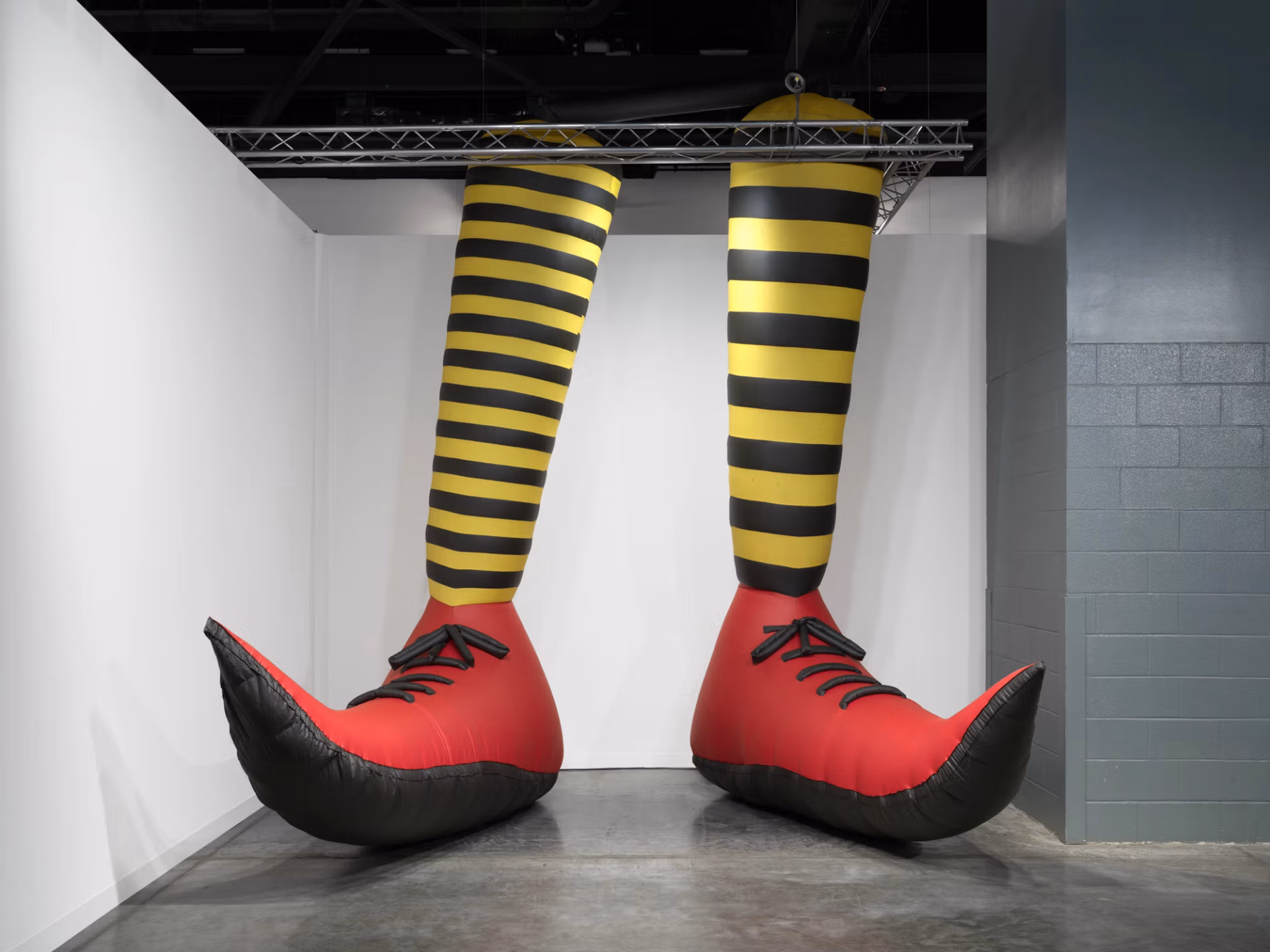 Some very big feet are turning heads at Art Basel Miami Beach. The 13ft-tall inflatable work Big Foots (1995) by the artist Pat Oleszko dominate the David Peter Francis stand, even poking out over the wall. The humongous piece comprises a pair of legs bedecked in striped tights and pointy shoes, reminiscent of the Wicked Witch of the East in The Wizard of Oz. The Miami presentation reflects Oleszko’s upwards trajectory—in January, more than 20 of her inflatables will take over SculptureCenter in Long Island City in her first New York solo show in over 35 years. The gallery staff at the fair, meanwhile, don sculptural hats designed by Oleszko, available for prices between $5,000 and $8,000. Chapeau!