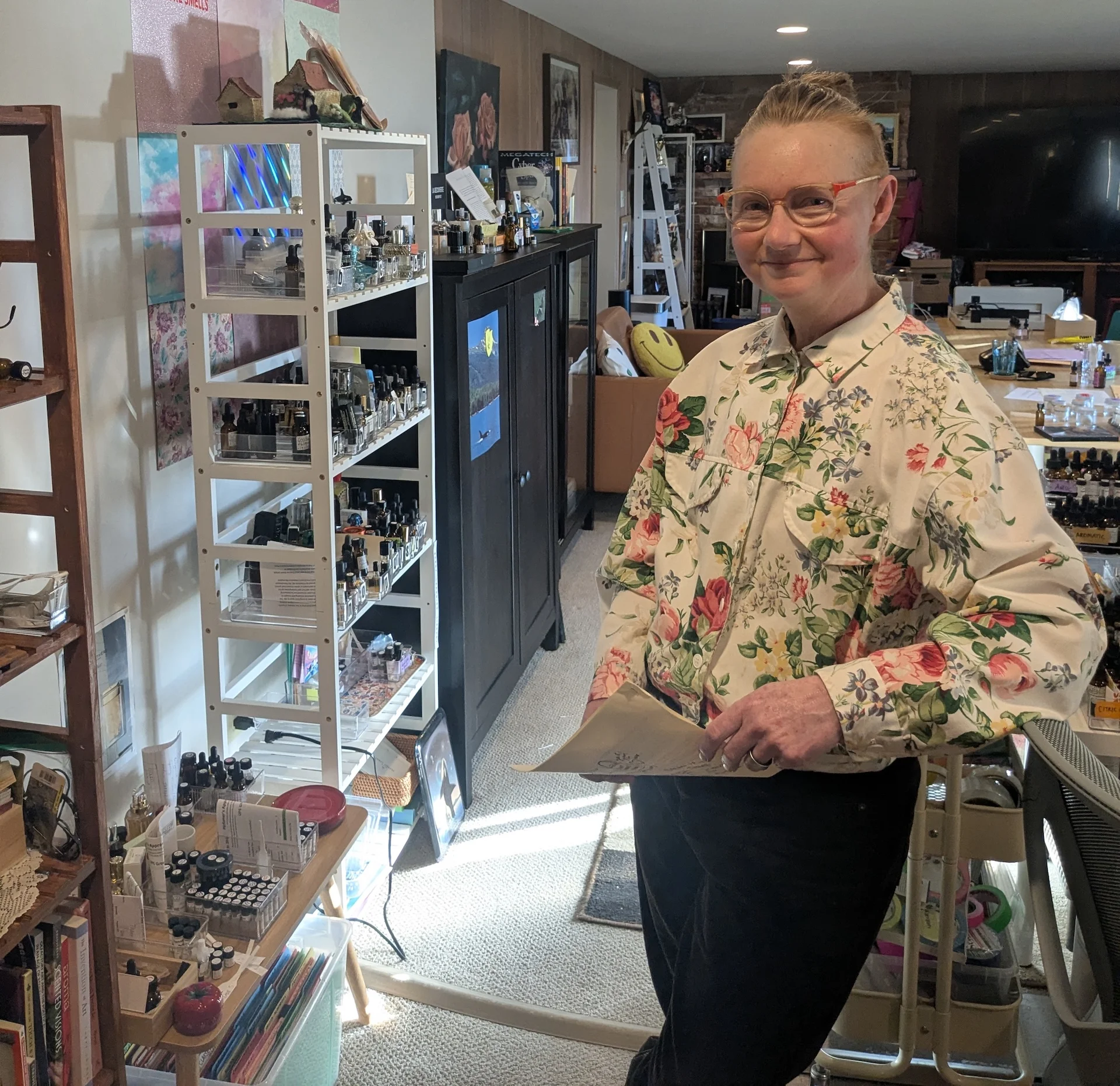 The artist Donna Lipowitz says she had the idea for her scent library while in the forest next to her house. “It’s kind of crazy, but I just get ideas all the time,” the Australia-born multisensory artist said one afternoon at her home in West Seattle, handmade curtains shading her vast collection of perfume bottles against the sun. “I genuinely thought: wouldn’t it be cool if you could borrow scents like books? And would that work? Would people do it? Would they just think it was stupid?”