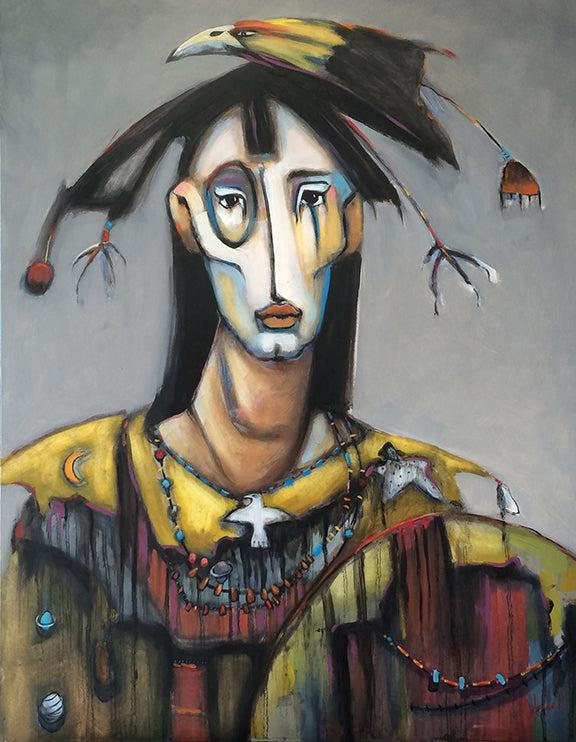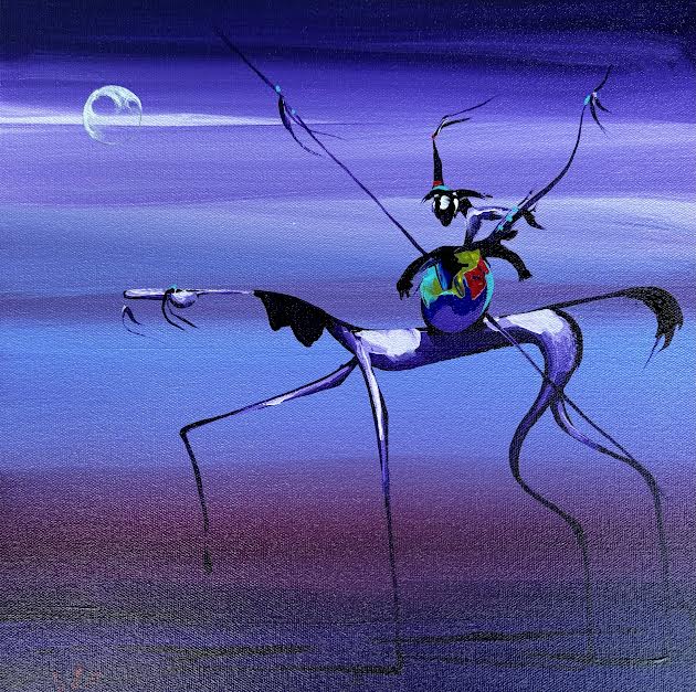 Perhaps most compelling among Hayes’ diverse body of work are her surrealist acrylic paintings, particularly the mesmerizing Spirit Warrior and Star Traveler series. These otherworldly compositions map territories that exist beyond ordinary consciousness.