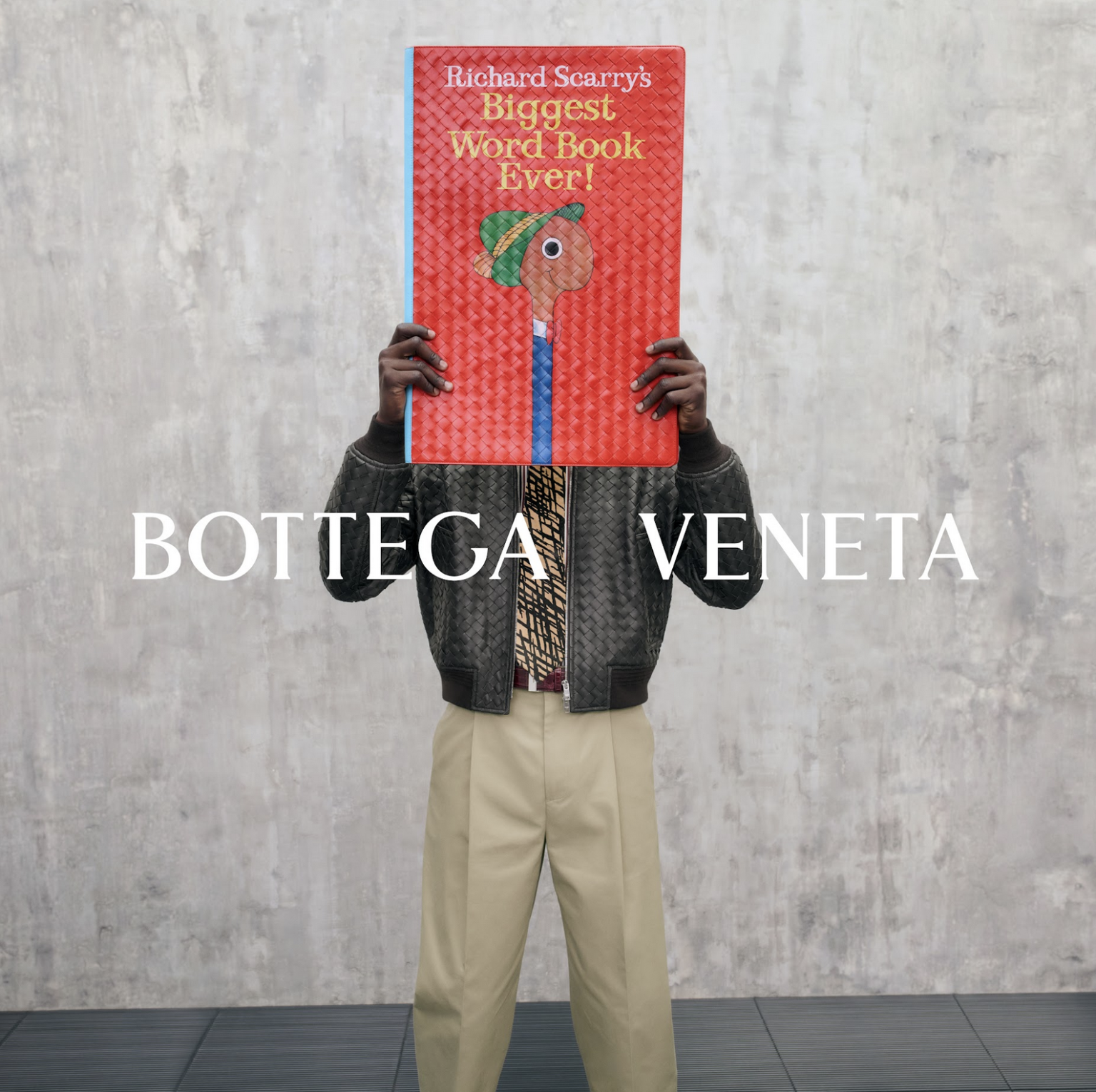 The real star of this capsule collection, however, is an accessory unlike any other—two oversized Intrecciato editions of Scarry’s encyclopedic Biggest World Book Ever (1985). Both are based on a 2013 re-issue of the book, but one features the actual story inside, with a Bottega Veneta Ex Libris sticker on its first page. The other offers blank pages to serve as a sketchbook, plus a customizable tag for exercising the childlike pleasure of claiming one’s territory.