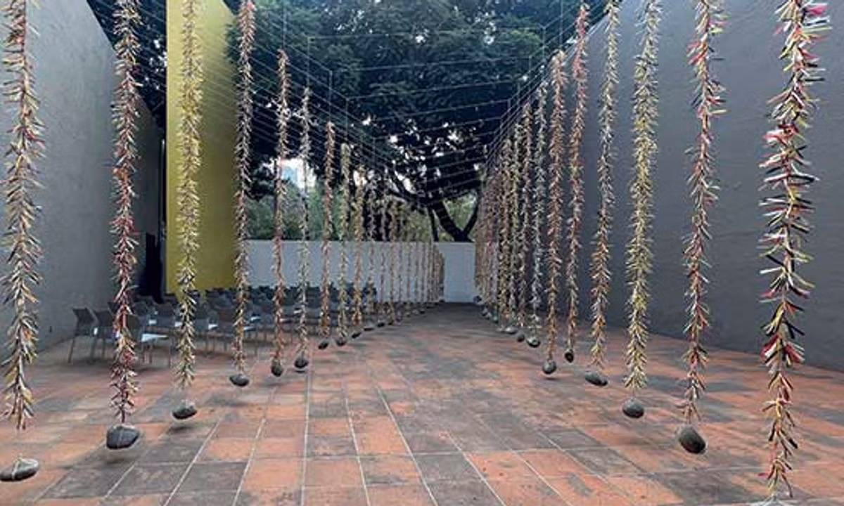 Rather than creating a historic museum, Unam, through its dirección general de artes visuales, sought to revive Goeritz’s vision through temporary programming of site-specific projects in dialogue with the space. The patio—where Goeritz originally installed his steel sculpture Serpiente de El Eco (1953), now exhibited at the Museo de Arte Moderno—is often a protagonist. The original bar counter was kept, in line with Mont’s vision. Since its reopening exhibition, curated by then-director Guillermo Santamarina and featuring Gabriel Orozco’s football installation Balones acelerados (2005), the museum has hosted multiple projects.
