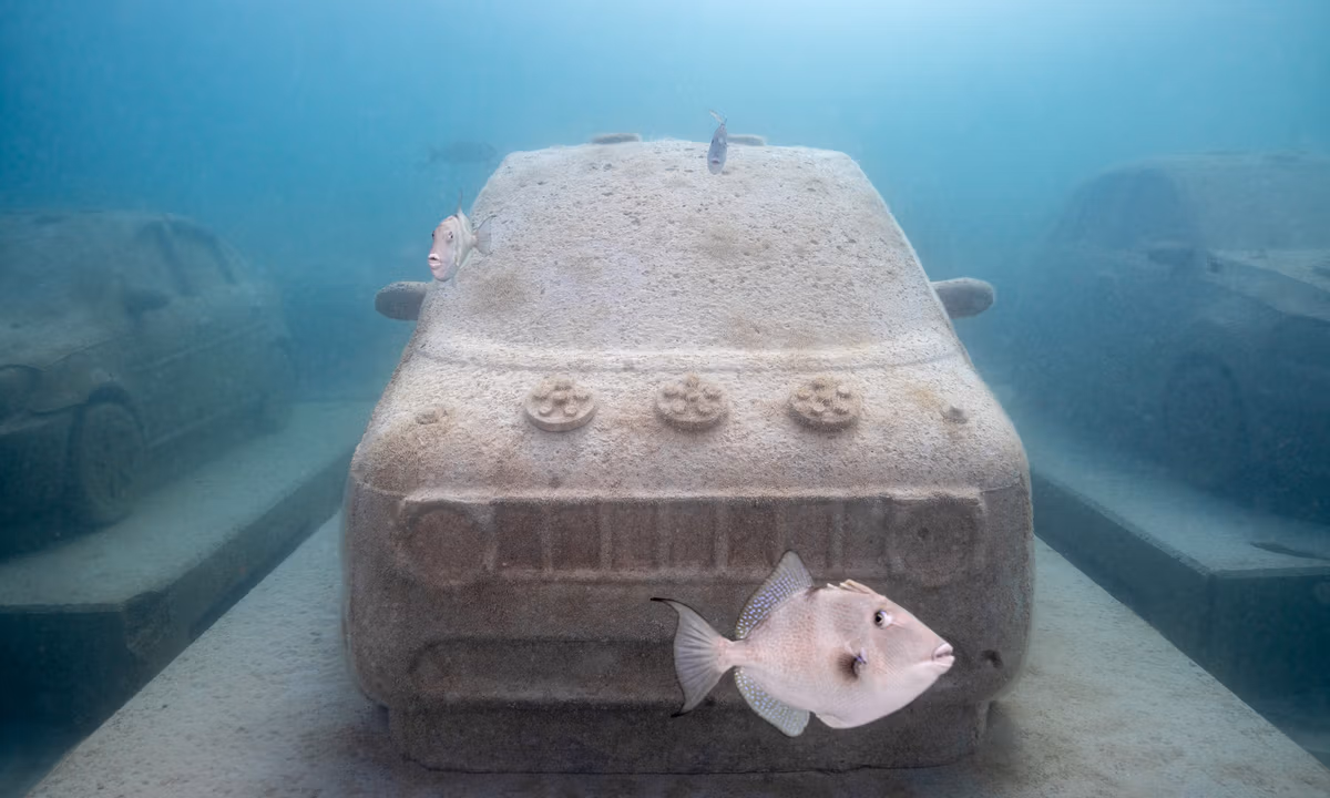 A large installation by the Argentine artist Leandro Erlich, consisting of 22 submerged marine-grade concrete cars on the ocean floor that seem to drift towards nowhere as the current flows through them, marks the first phase of the Reefline project just off the shores of Miami Beach. This underwater sculpture park, located 21ft below the waves and 600ft from the beach, is designed to resemble a hybrid reef that will support coral regeneration and marine biodiversity. Over the next ten years, new art installations will be added until it reaches seven miles in length. The project, intended to demonstrate how art and science can drive real solutions to climate change, was developed by the cultural producer Ximena Caminos and features a masterplan by the architect Shohei Shigematsu of the firm OMA.