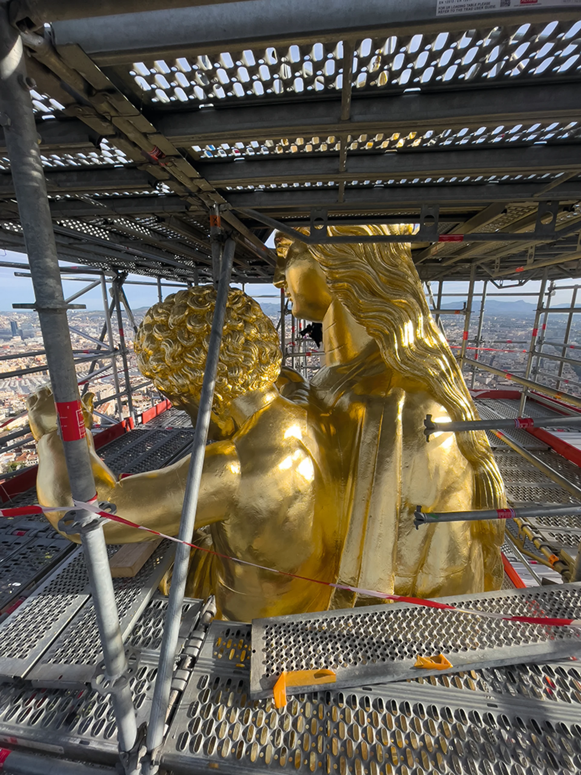From February until late October, however, she was entirely hidden from view, while extensive restoration was carried out on the statue, its stone pedestal and the four stone angels that sit on the corners of the terrace at the base of the bell tower. Emphasising how keenly her absence was felt, the chief architect and art historian Xavier David, who has worked on the church since the late 1990s, says they installed a blinking light inside the scaffolding—to replicate the Madonna’s beating heart.