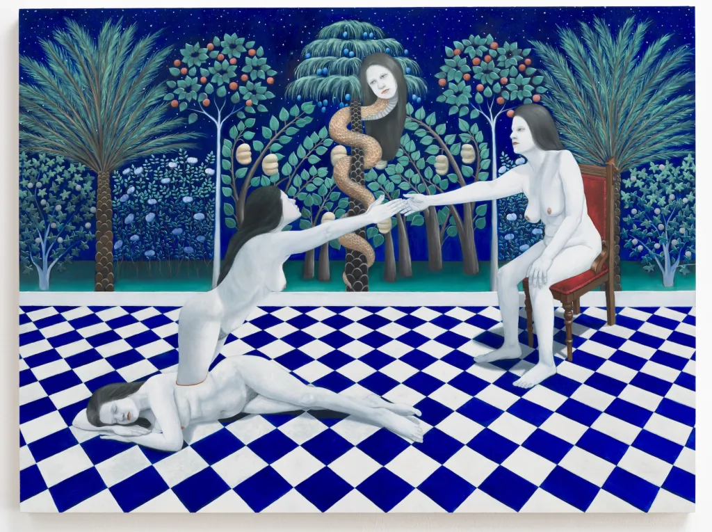 “It’s the artist’s first time showing outside Nashville and her first time showing at an art fair, and she’s here with us,” gallery director Ashley Layendecker told ARTnews. Raised in a Southern Baptist fundamentalist Christian culture, the artist paints surreal modern interpretations of Biblical passages, populated entirely with versions of herself. “She works out of her kitchen and is raising three children,” Layendecker added.