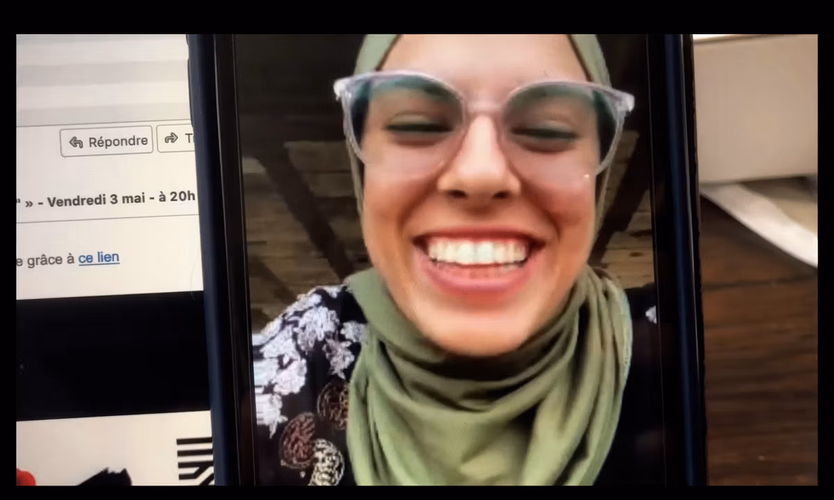 Hassouna has a magnetic presence, with straight white teeth often bared in an anxious smile, even as our perception of her is occluded by the raspy audio and laggy pixels that represent the obstacles between the West and Gaza: a physical blockade, degrading communications infrastructure, selective media narratives. Hassouna calls from home, a friend’s house, a shelter, a rooftop—wherever she can get a charge and a signal. The dialogue proceeds in fits and starts, interrupted by sound that glitches, video that cuts out, calls that drop, devices that sometimes rattle with the sudden percussion of Israeli bombs. Hassouna and Farsi, an Iranian-born French filmmaker, speak together in English. The film spans a year almost exactly to the day, from April 2024 to April 2025, and reminds the viewer of the timeline of the current conflict’s first year: the false hope of a ceasefire, the blocked aid, the destroyed hospitals, the assault on Rafah, the rising spectre of starvation.
