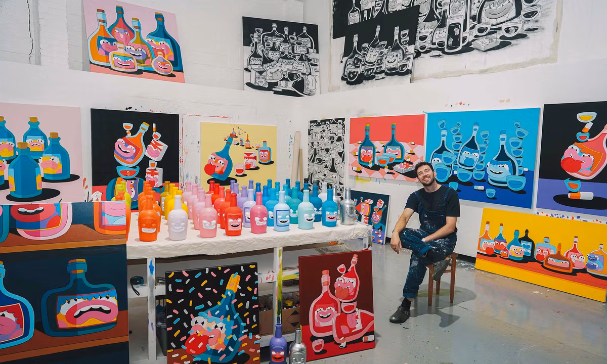 Callaby’s is a stripped-back model. Having studied design and worked in advertising for seven years, he saved up and moved to Montenegro during the pandemic to focus on his painting. There, he made enough money selling his work through Instagram that he returned to the UK as a full-time artist. Since then, he has organised and funded two pop-up shows in central London; both sold out (paintings are priced at around £3,000-£4,000 and collectibles around £750). Callaby now sells directly to his client base entirely via Instagram, where he has around 80,000 followers. The pop-ups “create an additional sense of urgency” to purchase his work, he says, noting that exhibition costs never go above around the equivalent of a 35% commission. “So, I’m still making more than if a gallery took a 50% cut,” he points out.