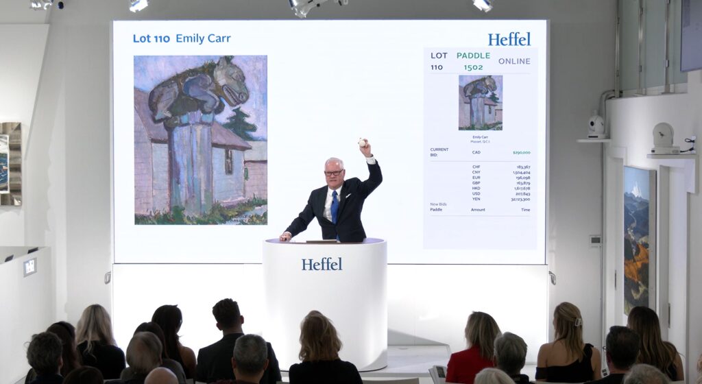 A press release following last night’s sale said “Collectors flocked to Heffel’s cross-country previews” of Masset Q.C.I. Given all that hubbub, Treibitz said he expected the painting to hammer higher than it did. “I never thought it would go viral,” he remarked. “That doesn’t equate to results, obviously, but it definitely helps.”