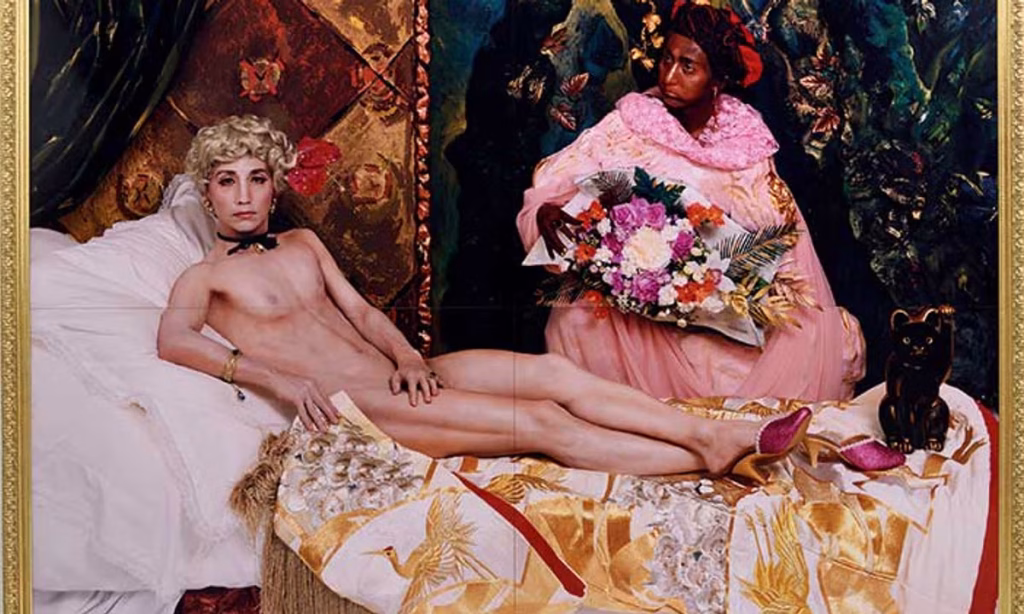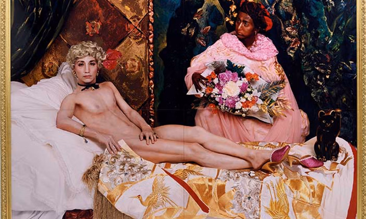 One of the first works one encounters is Yasumasa Morimura’s Portrait (Futago) (1989), a landmark appropriation of Manet’s Olympia (1863). By substituting Olympia with his own visage, Morimura challenges gendered and racial hierarchies while directly confronting the Western gaze. Further, by inserting his face in the Black maid figure, the artist invokes Japan’s own colonial history, casting the work as both critique and mirror of ambivalent cultural identity in the atomic age.
