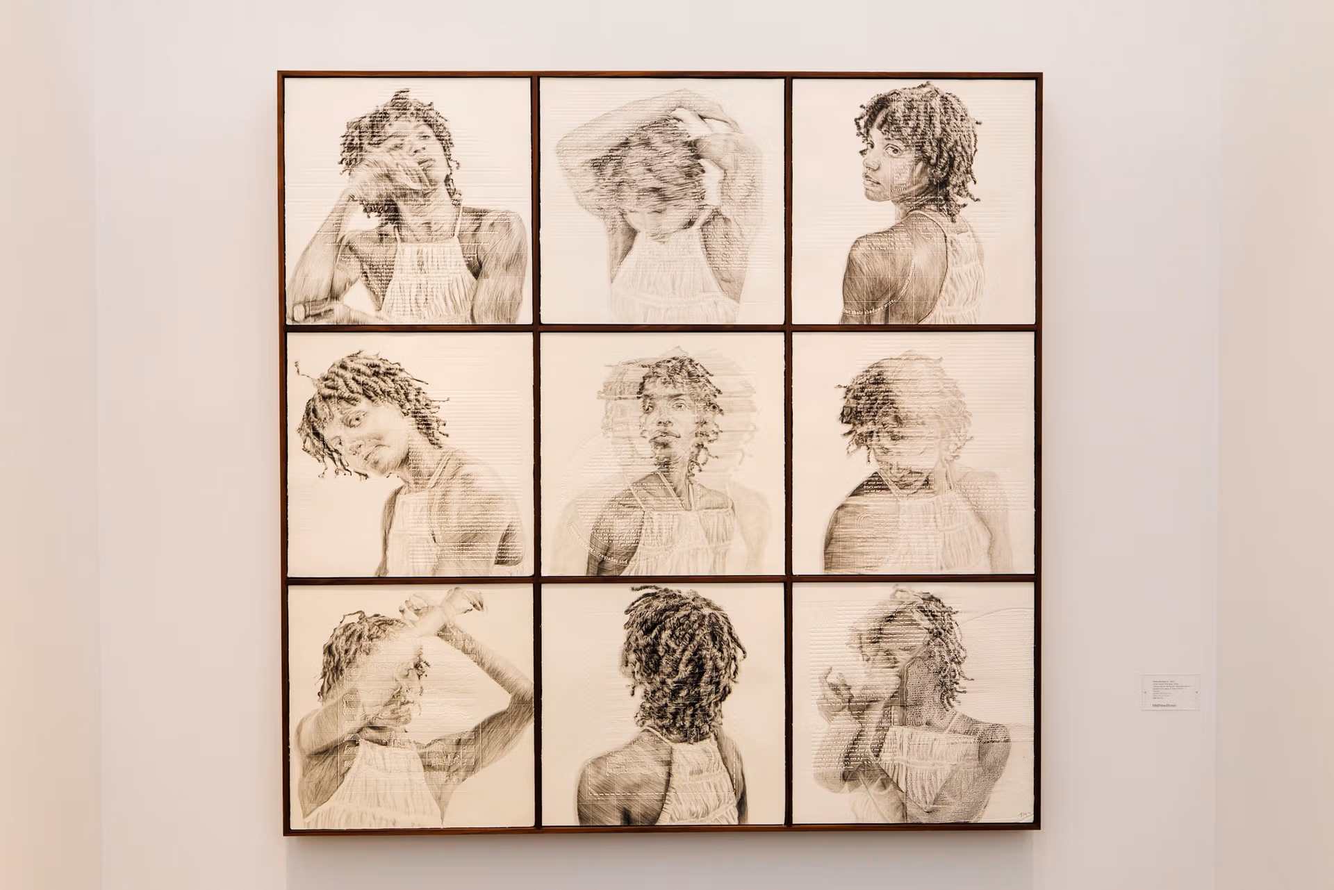 “Kenturah Davis is a Black artist from Altadena. She lost her home and studio in the Eaton fire last year, and she recently had a baby. What I love about this drawing in particular is that it has these impressions—like a text by Zora Neale Hurston and sheet music.”
