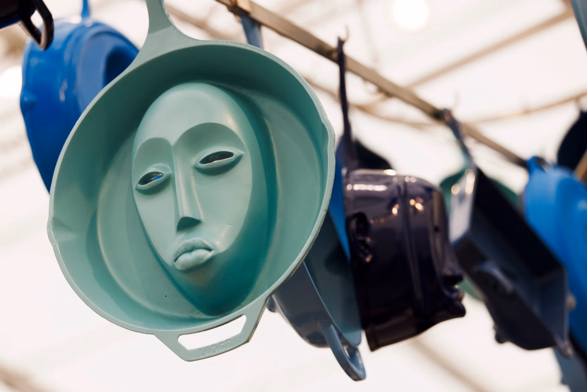 Born and raised in Texas, Hugh Hayden is a former architect turned sculptor. Now based in New York, he anthropomorphises everyday objects in an exploration of what it means to be human. In this series of powder-coated aluminium skillets, he used imprints of African masks and sometimes his own face in a commentary on the importance of Southern soul food in American culture. “I like this work because of the way he coats his objects—the intentionality, the execution. It’s flawless,” Stokes says.