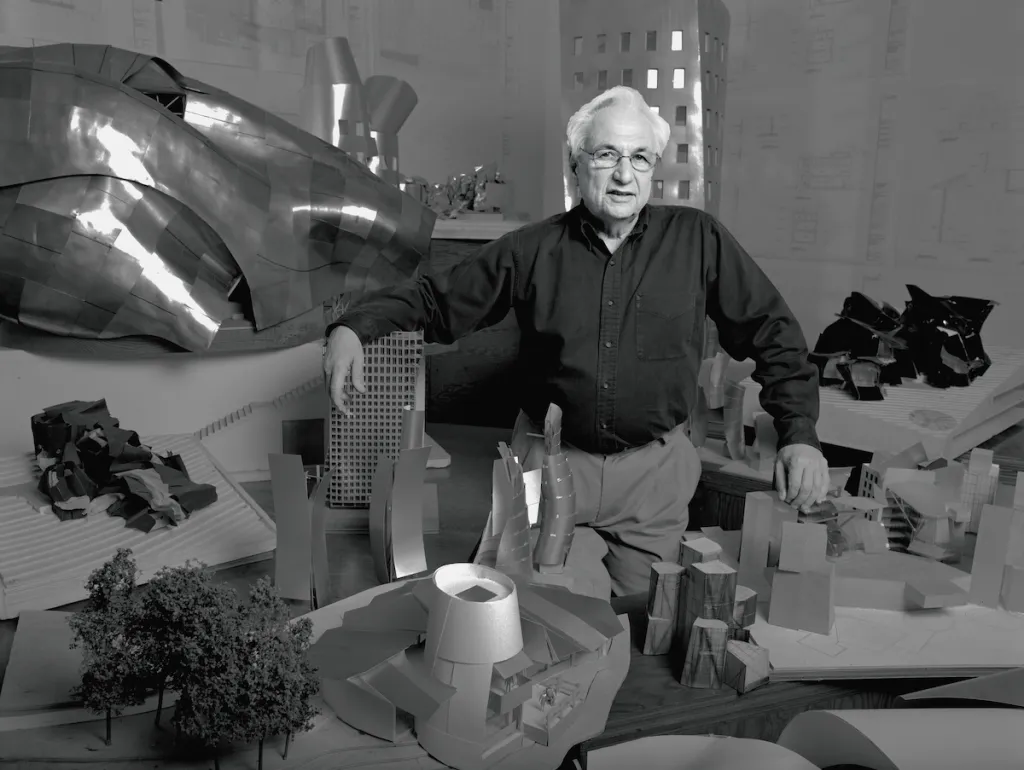 Frank Gehry was born under the name Frank Owen Goldberg—which he later changed because he feared antisemitism—in 1929 in Toronto. After Gehry’s father had a heart attack during an argument with his son, Gehry and his family moved to Los Angeles. He attended the University of Southern California’s architecture program, graduating in 1954, and then joined the Army for a period.