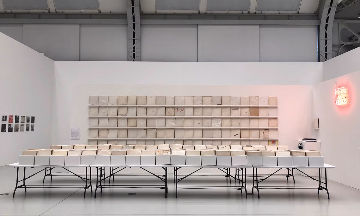 “It’s the durational and relational aspects of We Buy White Albums that establish it as a conceptual artwork,” Tinari says. “This was an ongoing obsession based on the impossible premise of collecting all three million copies of the album’s first pressing. Each time he exhibited it, he created a space where viewers could interact—with him, with each other, and with the objects—in a way that stood at a subtle remove from the everyday reality it mimicked. There is a tender absurdity, underpinned by a near-frightening rigour, that elevates it beyond the realm of the ordinary.”