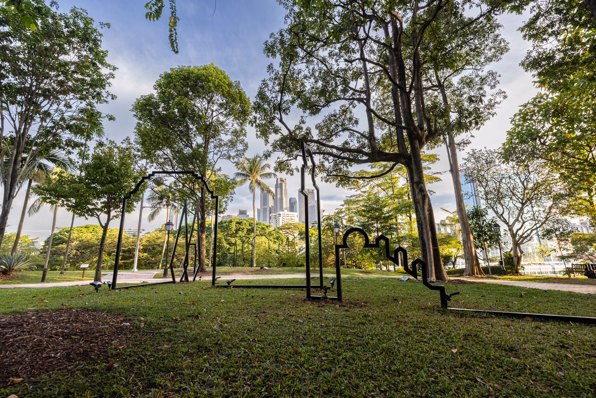 The Indian artist Ayesha Singh’s Continuous Coexistences (Singapore) (2025, pictured) is among the highlights of this year’s Singapore Biennale. The sculpture perched atop a hill in Fort Canning Park transforms an architectural line drawing into a dynamic three-dimensional installation. At Art SG, she will show three new wall reliefs from her Evolution series, similar sculptural interpretations of line drawings. The calligraphic works map the evolving forms of Indian column capitals across the second to 17th centuries. Two black-and-grey sculptures will trace the outlines of column capitals from the caves of Karla, Ajanta and Varaha, followed by forms from the Hoysaleswara Temple and the Unesco World Heritage site of Hampi. Deliberately placed behind these two visual timelines will be a third sculpture in brass, documenting column capitals from ancient stepwells in Gujarat and Rajasthan—civic water structures commissioned by female patrons, who have historically been overlooked. By distilling forms from these sites into a reflective material, Singh critiques the erasure of women while also reasserting their significance.