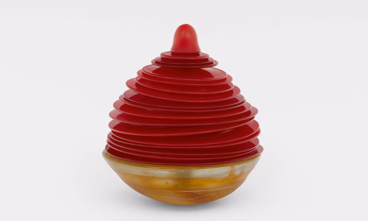 The Thai artist Pinaree Sanpitak began exploring female breasts in her work shortly after the birth of her son in 1994, when she began breastfeeding. Reflecting on her experience as a mother, the breast became a metaphor for herself as well as a broader celebration of womanhood. In 2001 Sanpitak began to draw parallels between the breast and Buddhist stupas—dome-shaped sites of veneration, and began her Breast Stupa series, combining the sacred with the sensuous. Over the past two decades, she has experimented with mediums including etching, painting, weaving and sculpture. Stacked Offering I (2024-25), is part of a new series made of luminous hand-blown glass. The delicate work builds upon her previous sculptures made of layered mulberry paper. Sanpitak has described her breast works as “evolving self-portraits” which reflect transformations in her body and life. At once fragile and playful, this glass form reflects the precarious nature of human existence and the need for balance in life.