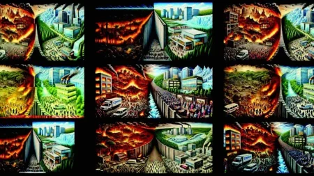 Viewers that are prone to motion sickness or overstimulation should be mindful of interacting with various artworks. In The Way of the Sea, Cosmic Void (2018), people step onto a slightly elevated platform and, in a motion reminiscent of the ocean floor, shift and bob around schools of fish, swaying branches and seafloor vegetation.