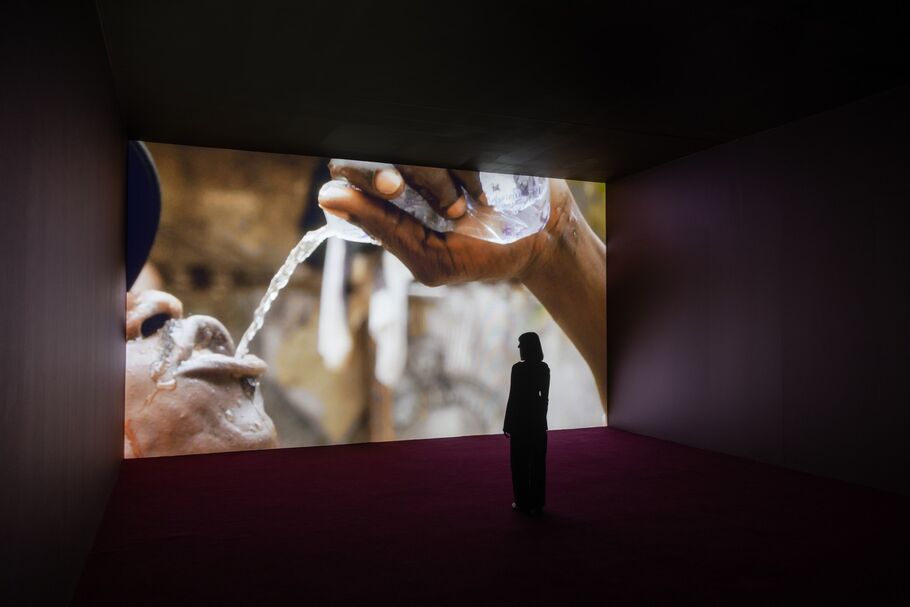 rtsy spoke with Bulgari at Camden Arts Centre in London during a major exhibition by British-born Nigerian artist Karimah Ashadu. “Tendered” showcases three of Ashadu’s films, alongside accompanying sculptural pieces. A new film titled Muscle (2025), co-produced by the Fondazione, focuses on a group of bodybuilders in Lagos pushing themselves to extremes, giving a close view of hypermasculinity in West African society.