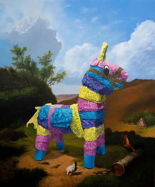 “No one else was being asked to do that,” Favela said. “I thought to make a symbol representing Latinidad that would be so corny they would think I was making fun of the art world. But the piñata has so many layers—it’s about celebration, it’s about destruction. It automatically ties into Latino culture in the United States and everybody understands what that symbol means.” He added that the inclusion of the work in a prestigious institution is also significant, since “a lot of gallerists and professors told me I would never get into museums using tissue paper.”