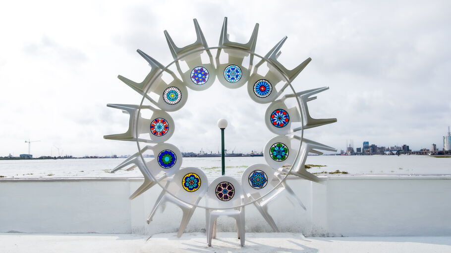 Shonibare and Peterside-Schwebig are not alone in facilitating this shift. The internationally renowned artist and writer Victor Ehikhamenor founded the nonprofit Angels & Muse in 2018 to uplift African artists. This was later expanded with Black Muse, an artist’s residency (completed in 2024) and sculpture park (which opened in November) in Benin City. And, in October, British Nigerian artist and designer Yinka Ilori announced the launch of the Yinka Ilori Foundation in Nigeria, which will focus on how art and design can transform communities.