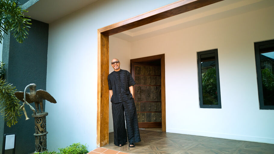 Portrait of Victor Ehikhamenor inside Black Muse Residency, Benin City, Nigeria, 2025.Courtesy of Angels & Muse and artist Victor Ehikhamenor.