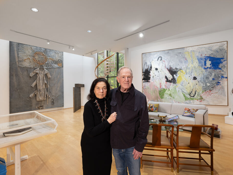 Portrait of Marc and Livia Straus in their Chappaqua home, with works by Anselm Kiefer, Richard Serra, and Georg Baselitz. Courtesy of Marc and Livia Straus.