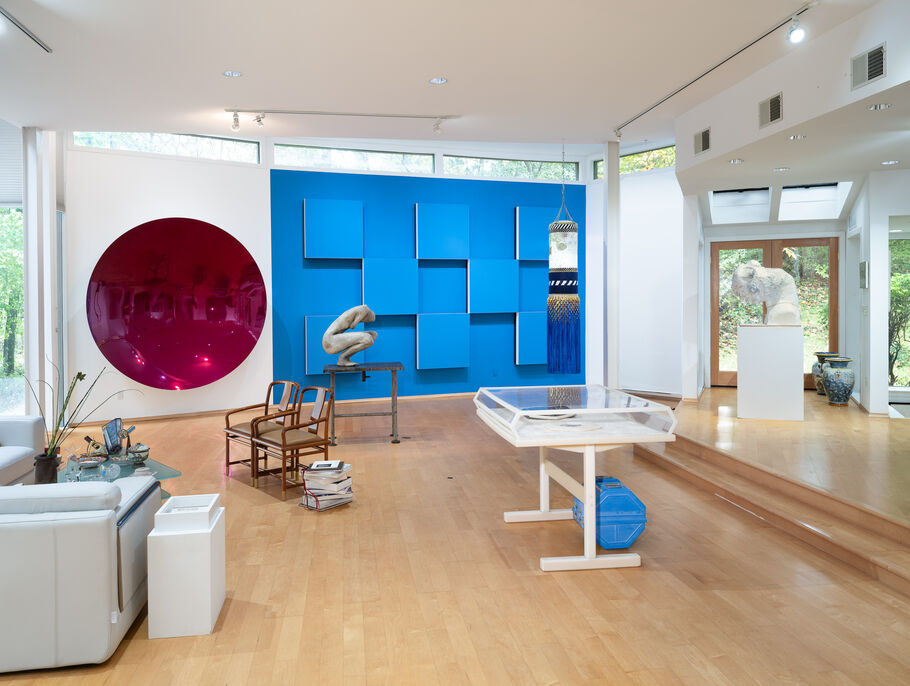 Installation view of Marc and Livia Straus’s home in Chappaqua, New York, with works by Anish Kapoor, Daniel Buren, and Jeffrey Gibson, among others. Courtesy of Marc and Livia Straus.