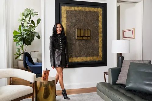 New York–based art collector Amitha Raman was, by her own account, a wild child growing up in Kansas City. “As much as I could be,” she smiled in her apartment overlooking Madison Square Park, surrounded by a monumental Rashid Johnson painting, a Nari Ward work, and a classic Maia Ruth Lee canvas.