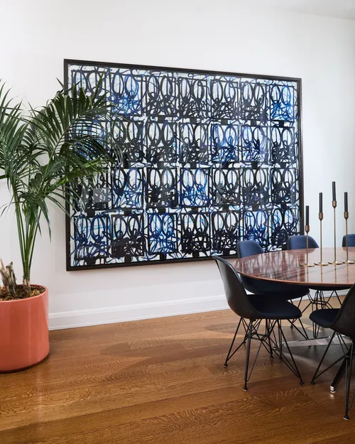 Larry Bell’s colorful glass sculptures flashed against the snow blanketing Madison Square Park outside Raman’s windows on the afternoon she toured me through her home. She’d recently hosted a reception to celebrate Bell’s installation, and two newly arrived works on paper—tokens of his appreciation—waited to be hung in the master bedroom, near an orange abstraction by Young-il Ahn and a silk painting by Kyungah Ham.