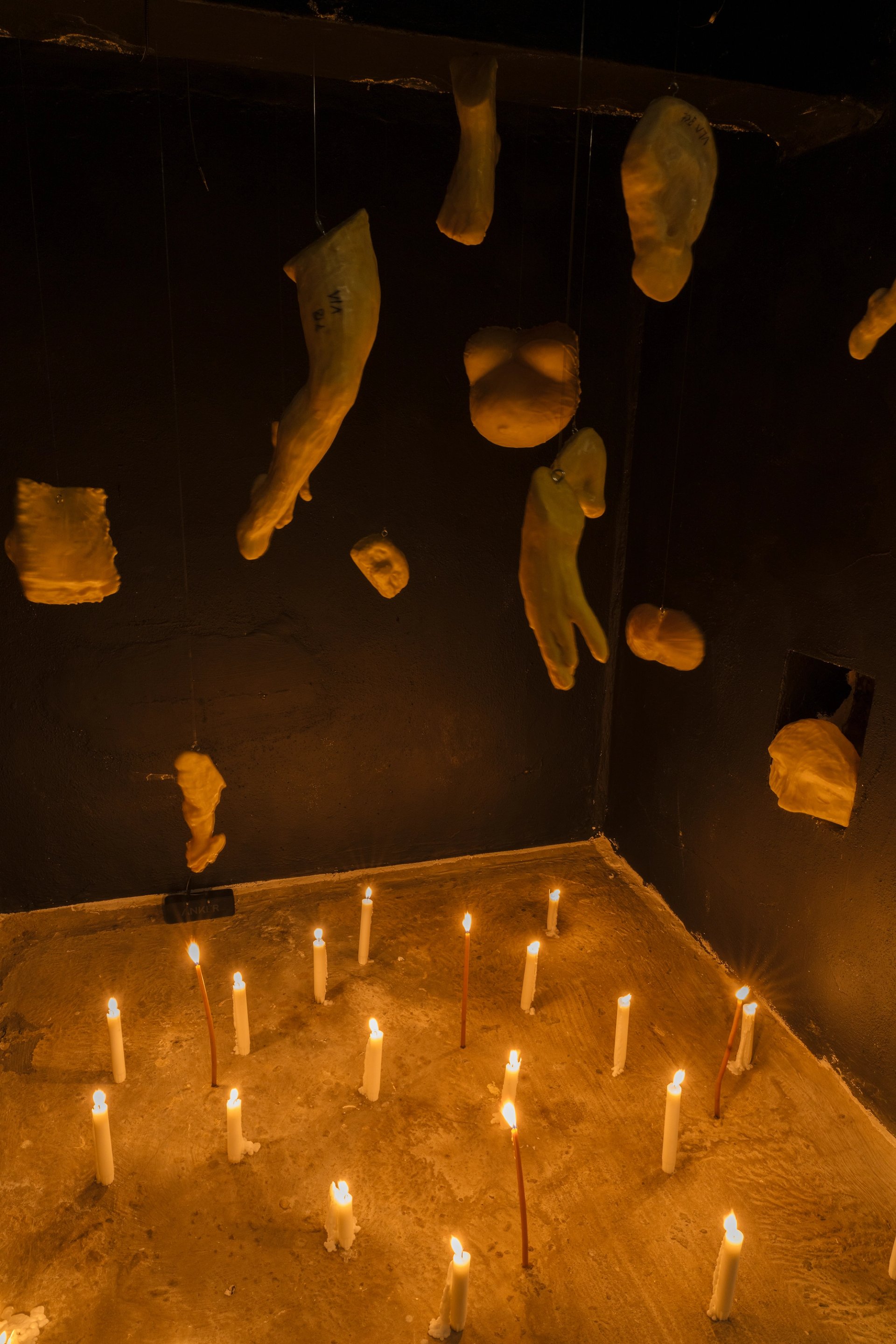 Dima Srouji, Phantom Votives, 2025. Beeswax, candles, sound by Dirar Kalash