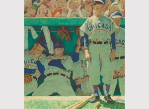 A popular painter of American everyday life, Rockwell (1894–1978) is most famous for his cover illustrations for the Saturday Evening Post magazine, which published over 300 of his artworks between 1916 and 1963. This oil study depicts unhappy members of the Chicago Cubs following Chicago’s loss to the Boston Braves on May 23, 1948.