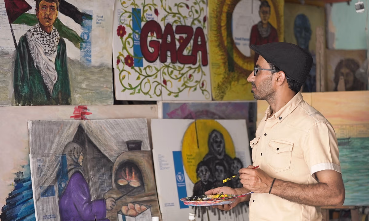 For the artist, seeing his work travel beyond Gaza has been deeply emotional. “I feel as though I’m sending a piece of Gaza to the world. These works aren’t just colours, they are living messages that carry our pain, our resilience, and our small dreams for peace and freedom,” he says. “It’s my way of saying: ‘We are here… we are still alive, and we still dream.’”
