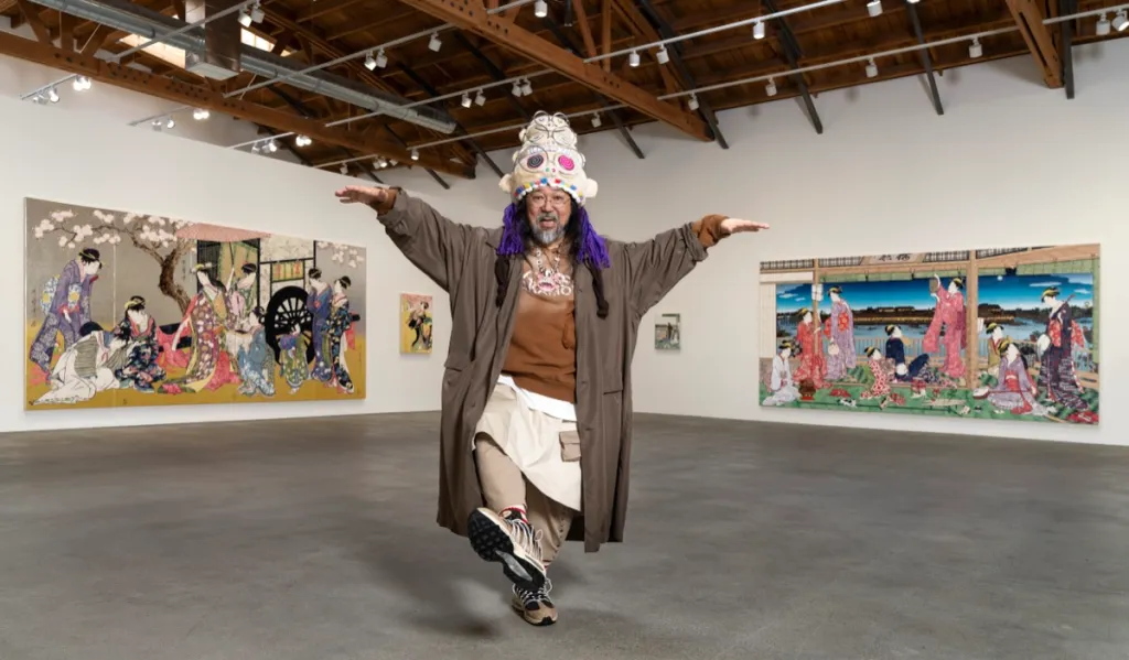 Before I leave, I spy a rainbow-colored face peering out from behind the hem of a voluptuous kimono. For a moment, I can’t decide whether he’s from the 1800s or from 2026, or perhaps, like his creator, from both at the same time.