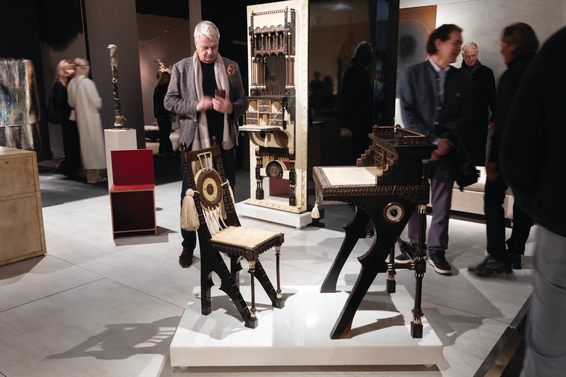 The Parisian gallery Sceners got off to a good start. Showing at PAD for the first time they won the prize for best stand for a presentation that created clever dialogues between desirable pieces. “We are trying not to specialise in a particular period,” explained the creative director Jonathan Haddad of the mix of 1900s Carlo Bugatti furniture, 2006 Ron Arad and 1950s abstract artist Jean Degottex. A small desk and chair (£65,000) by Bugatti (father of the car designer) stood out for its plethora of details typical to the designer—parchment surfaces, bone inlay, silk fringing and finely carved wood all assembled with Japanese-level joinery.