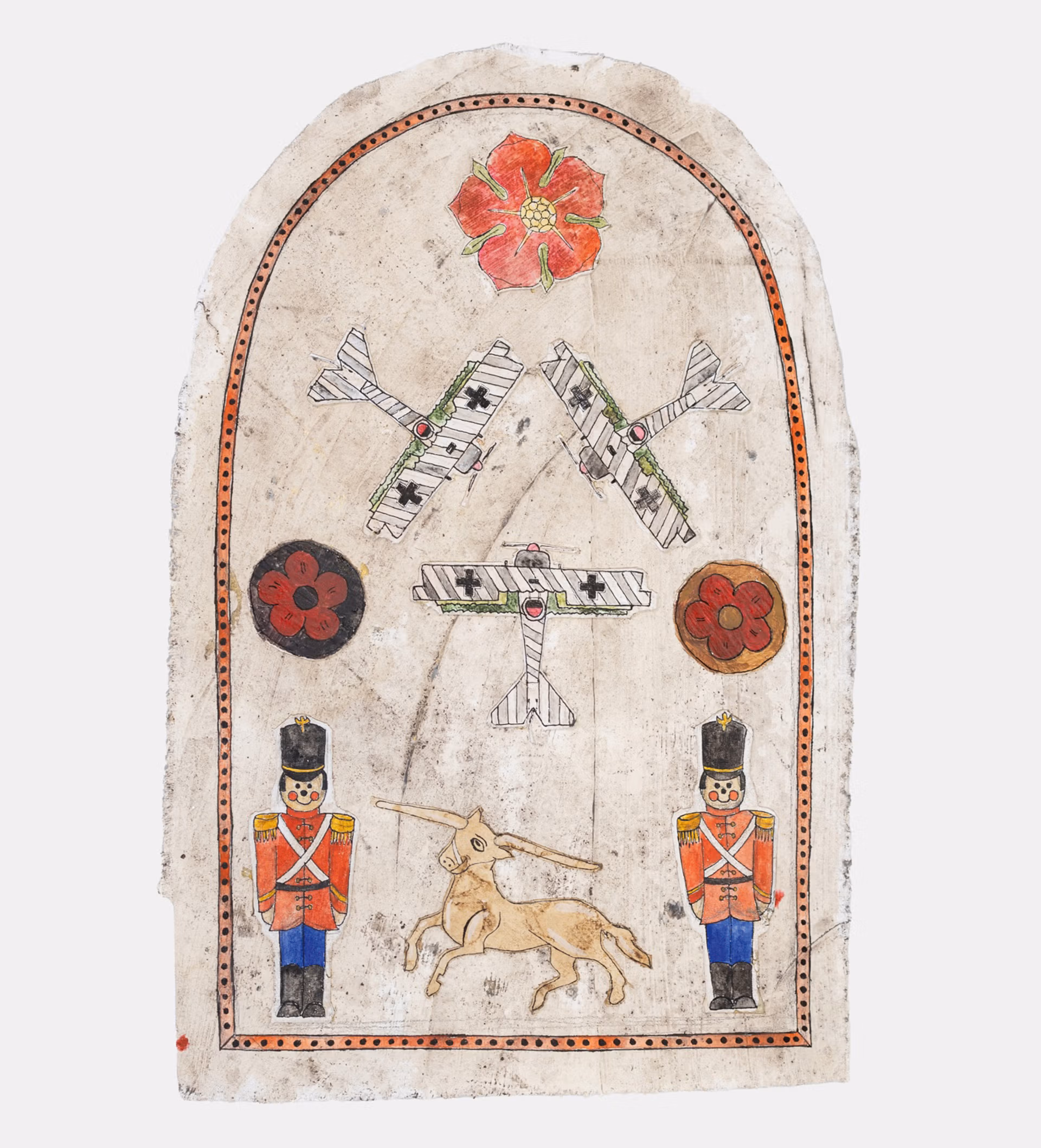 Gypsum Gallery presents Mohamed Monaiseer’s ongoing work I, Pet Lion. Drawing from heraldry, flags and children’s strategy games, his embroidered and painted textiles trace how symbols of conflict enter everyday visual culture. Repetition, appliqué and calligraphic marks expose how the logic of warfare appears as play.