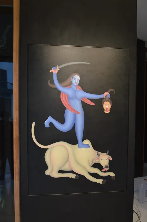 That work was Goddess Kali (1989) by Manjit Bawa, an Indian modern painter known for his fluid, descriptive figures and bold colors. “Manjit Bawa was a friend of my art teacher at Modern School,” she said. “That work ignited everything.”