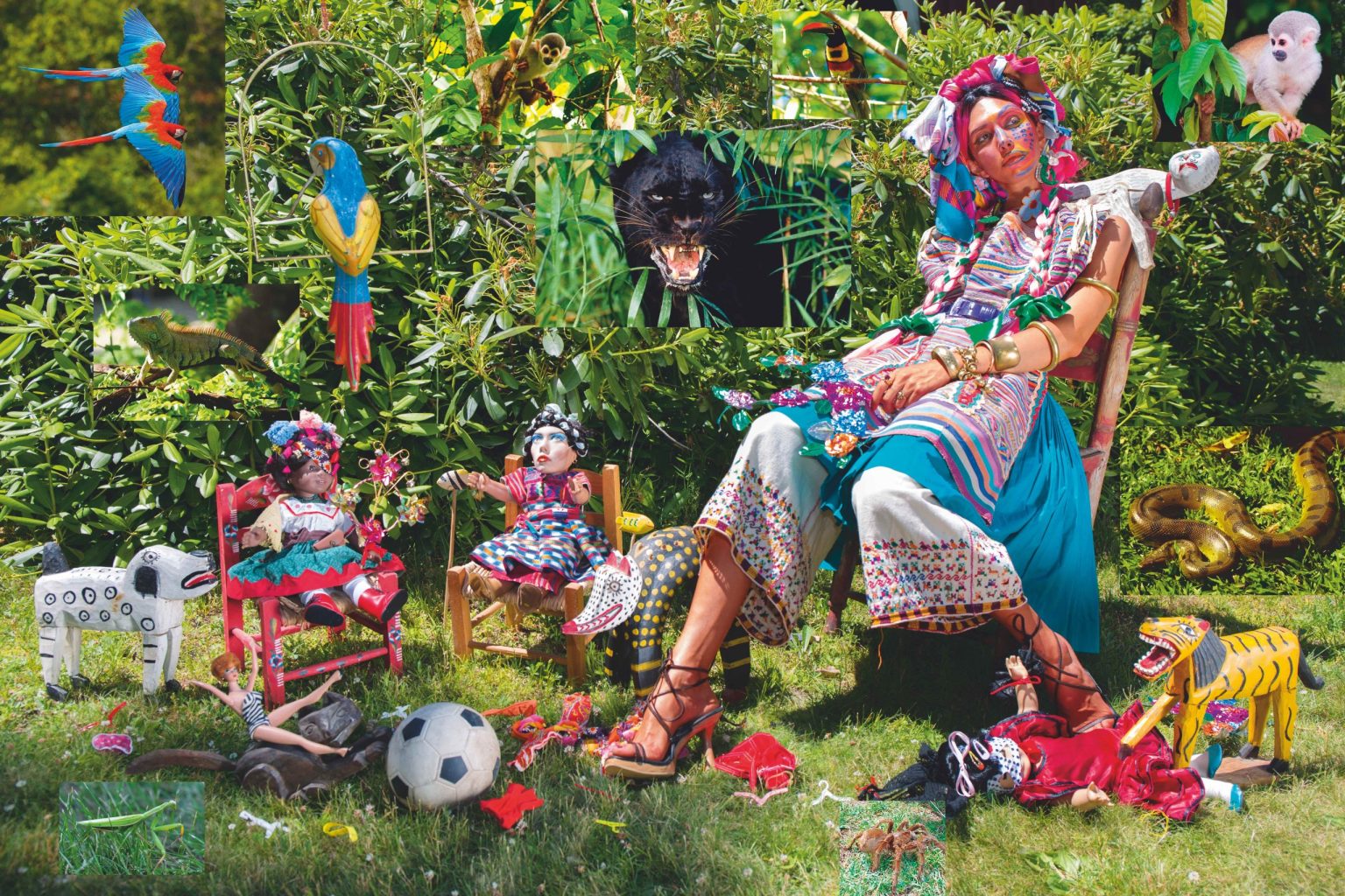 The show includes works by Omaskêko Ininiwak artist Duane Linklater; Mohawk artist Alan Michelson; Musgamakw Dzawada’enuxw artist Marianne Nicolson; Martine Gutierrez, an American artist of Mayan heritage; the late Cree artist Kimowan Metchewais; Rebecca Belmore of the Lac Seul First Nation; Yup’ik artist Nalikutaar Jacqueline Cleveland; American-Ecuadorian artist Koyoltzintli; and Salvadoran artist Guadalupe Maravilla.